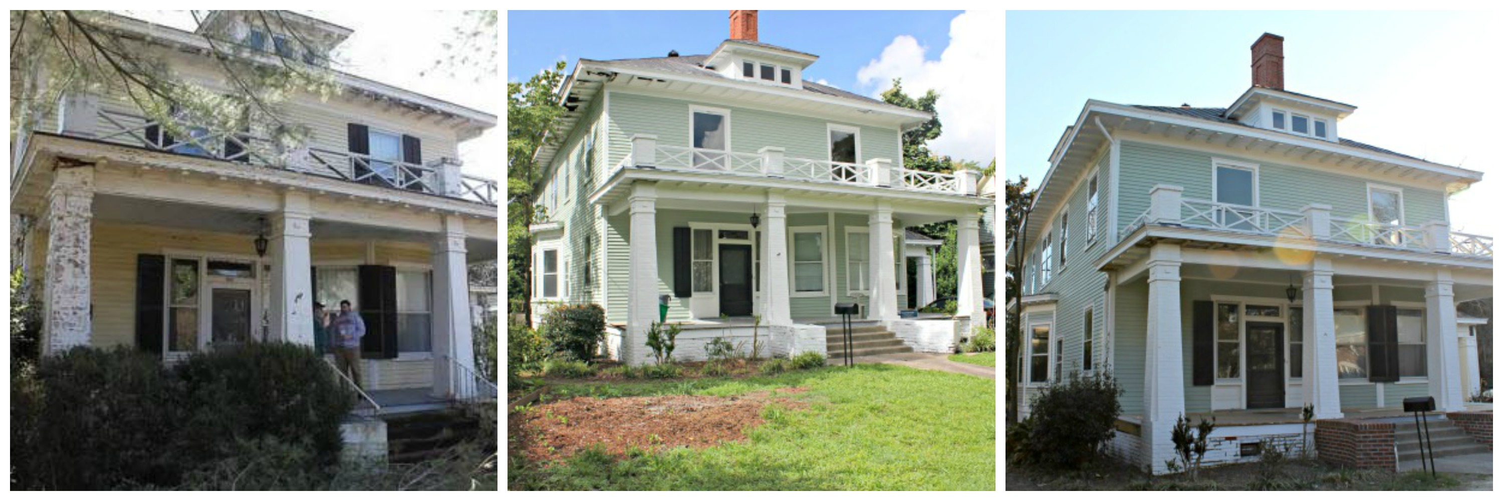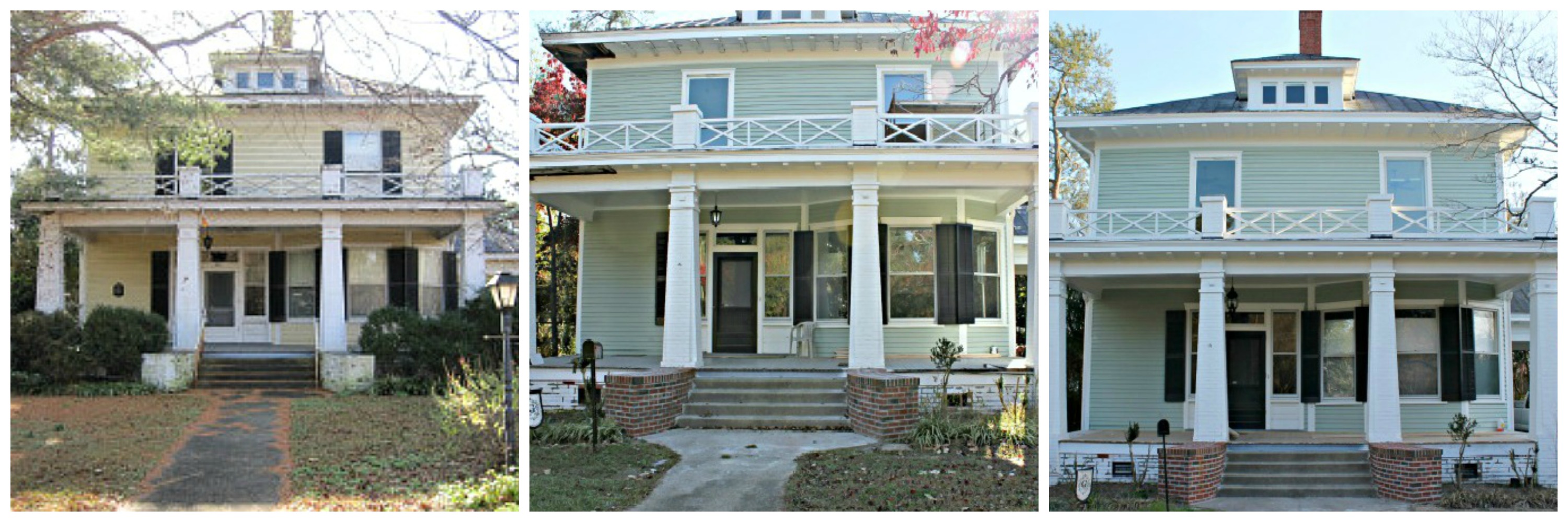 It is amazing what a little paint and porch railings can do to the exterior of a home. Over the years I have loved seeing some great before and after pictures of our flip homes. Your home is turning into a southern dream. I love following the progress!