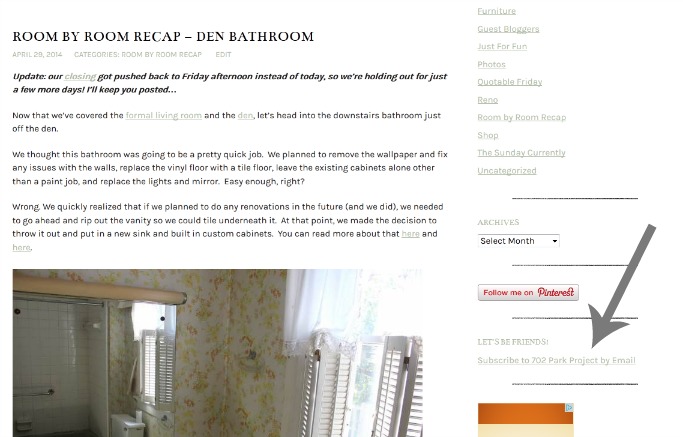 All you have to do is click on the “Subscribe to 702 Park Project by Email” link under Let’s Be Friends on the right. Then enter your email address in the FeedBurner window. You should receive an email shortly verifying that you are now subscribed.