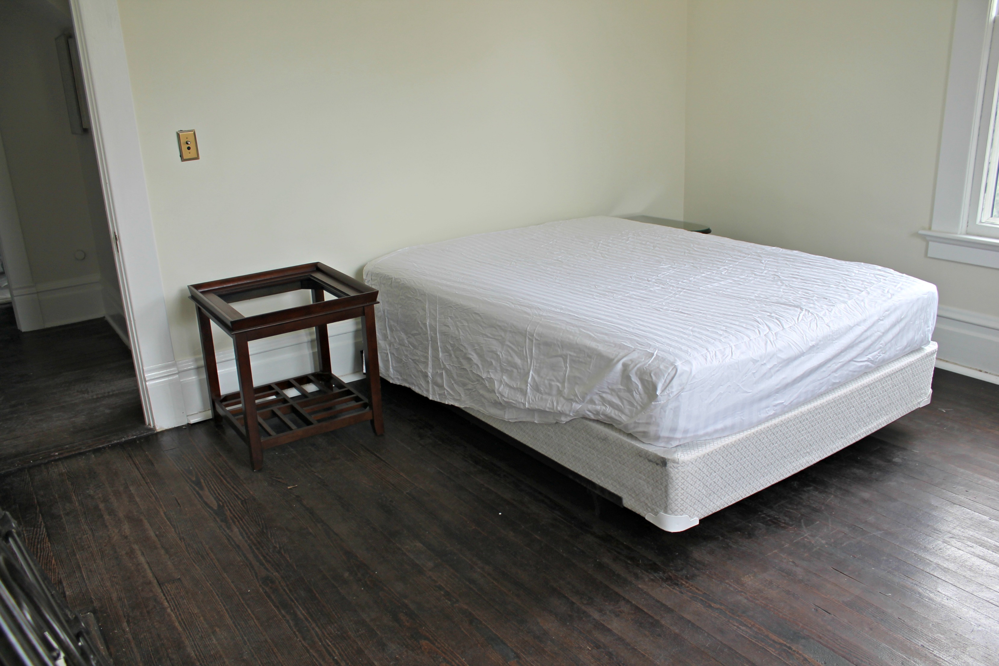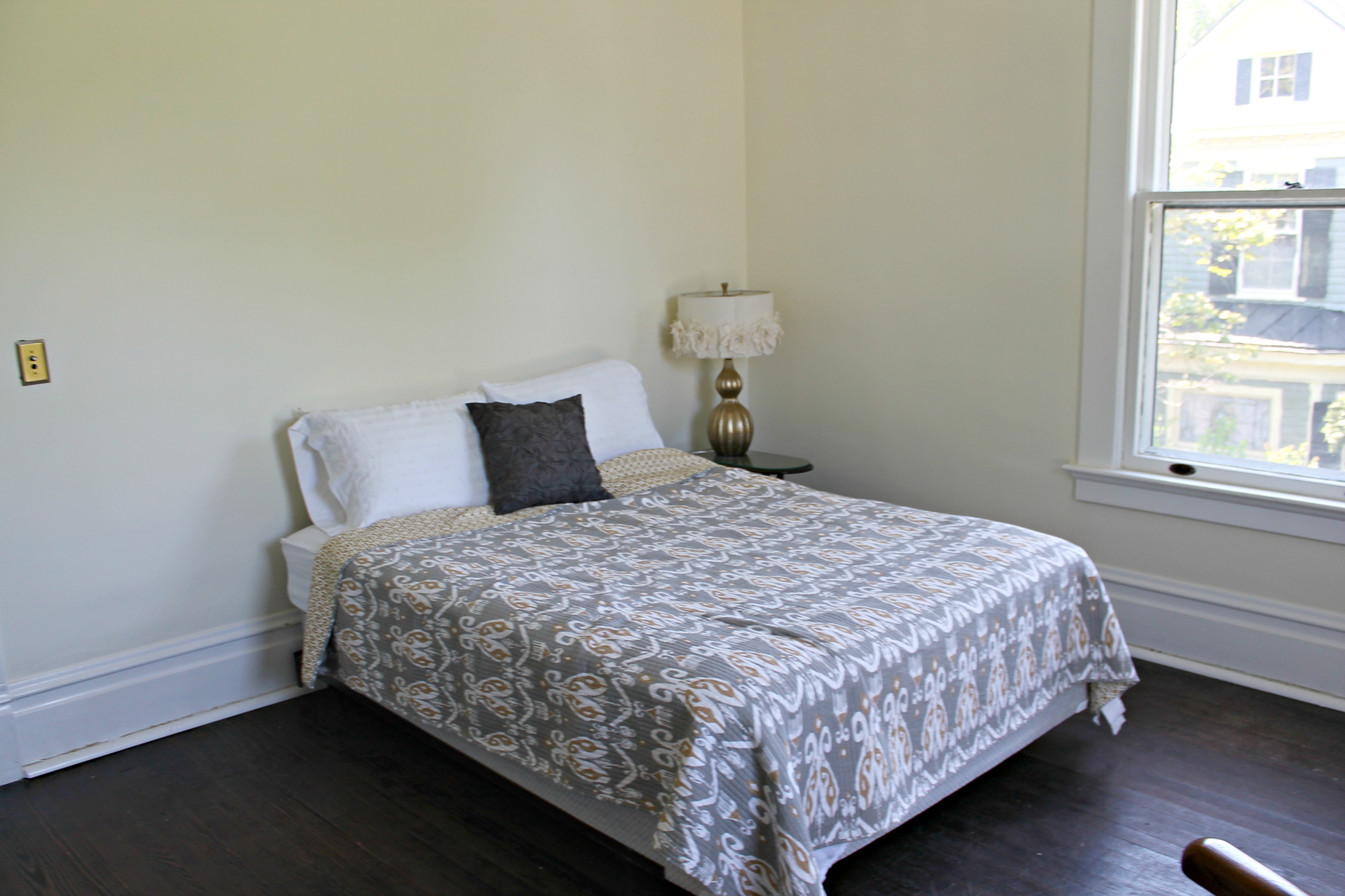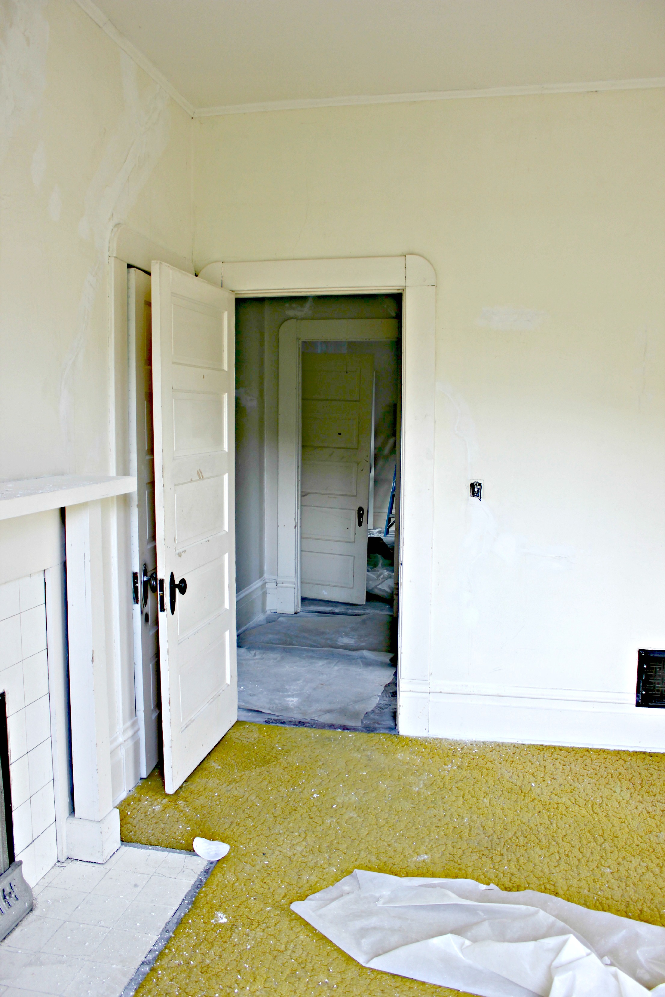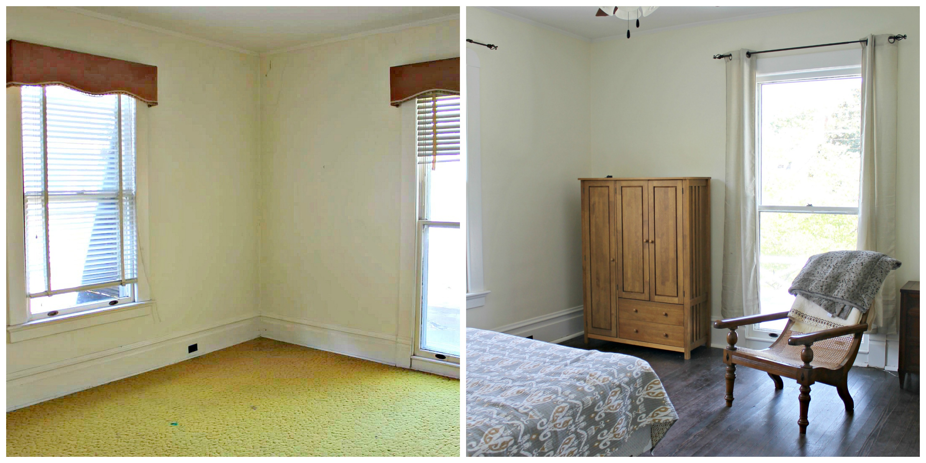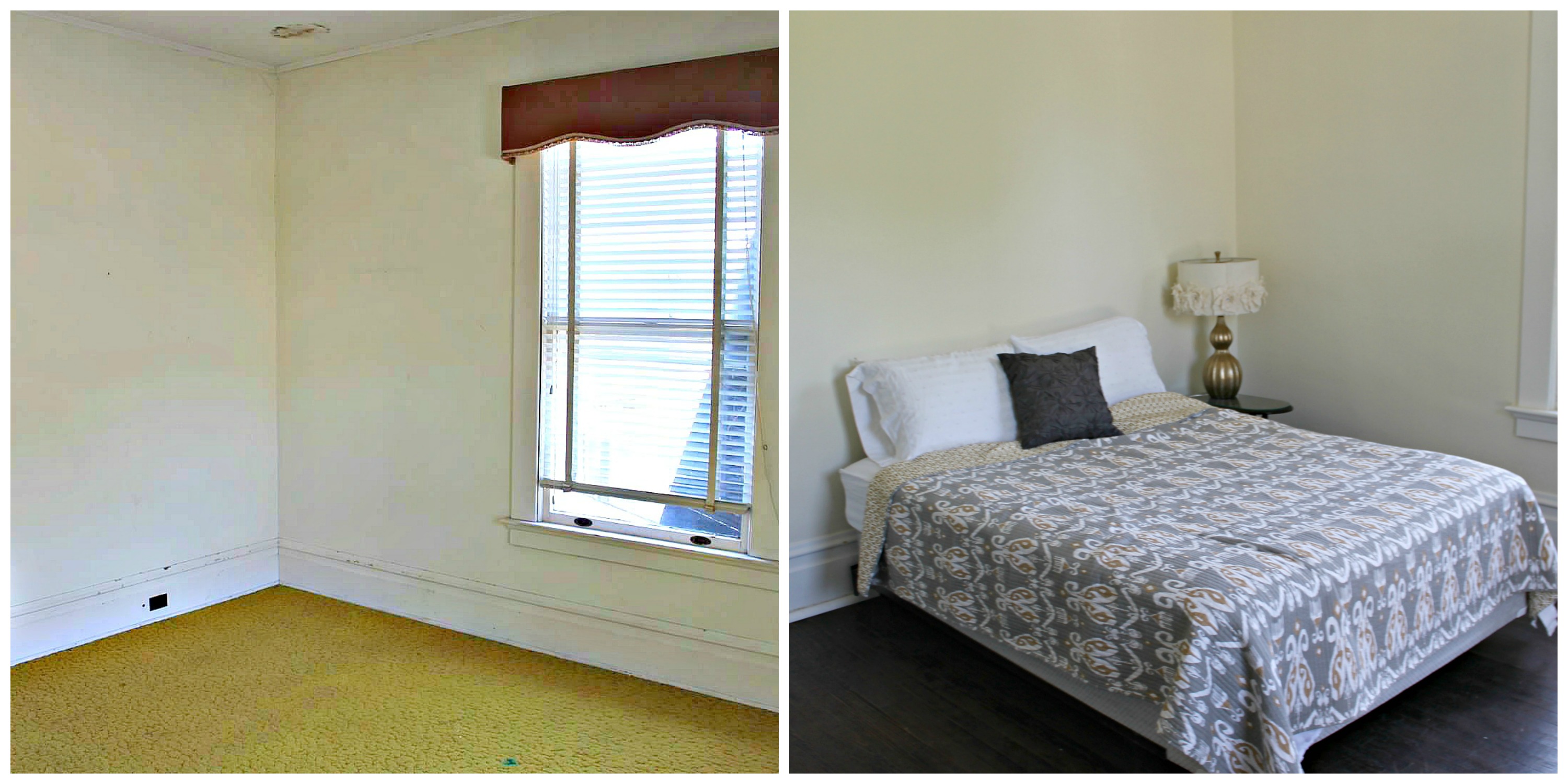 Next up in the Room by Room Recap series is the Gold Room. This is the room that my father-in-law grew up in. We call this guest room “the gold room” because it was the only room left with carpet and it was GOLD! As much as I love gold, that carpet had to go!