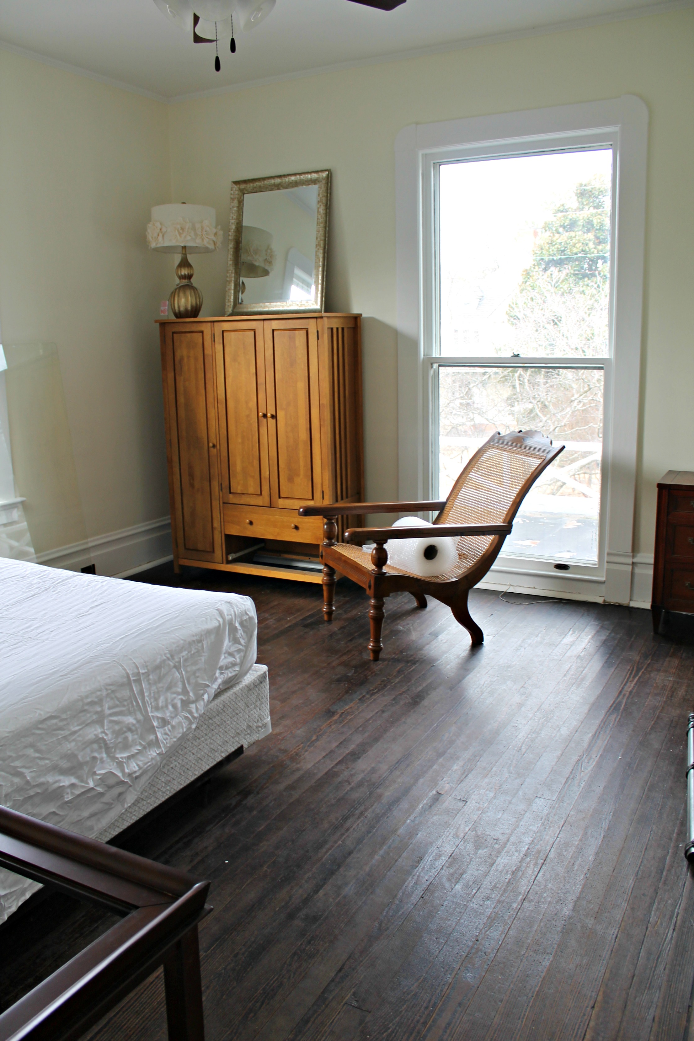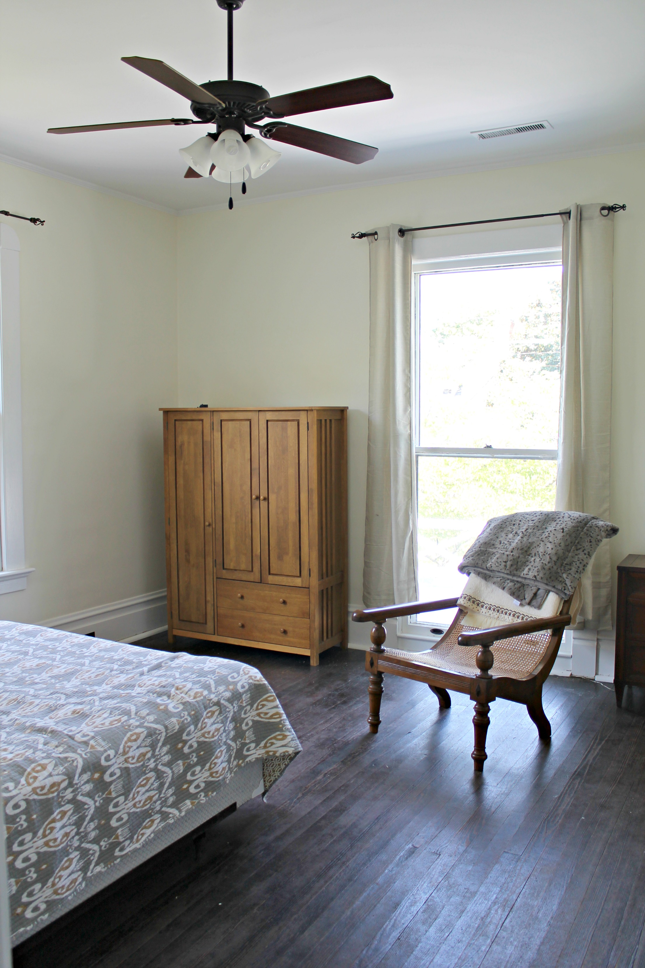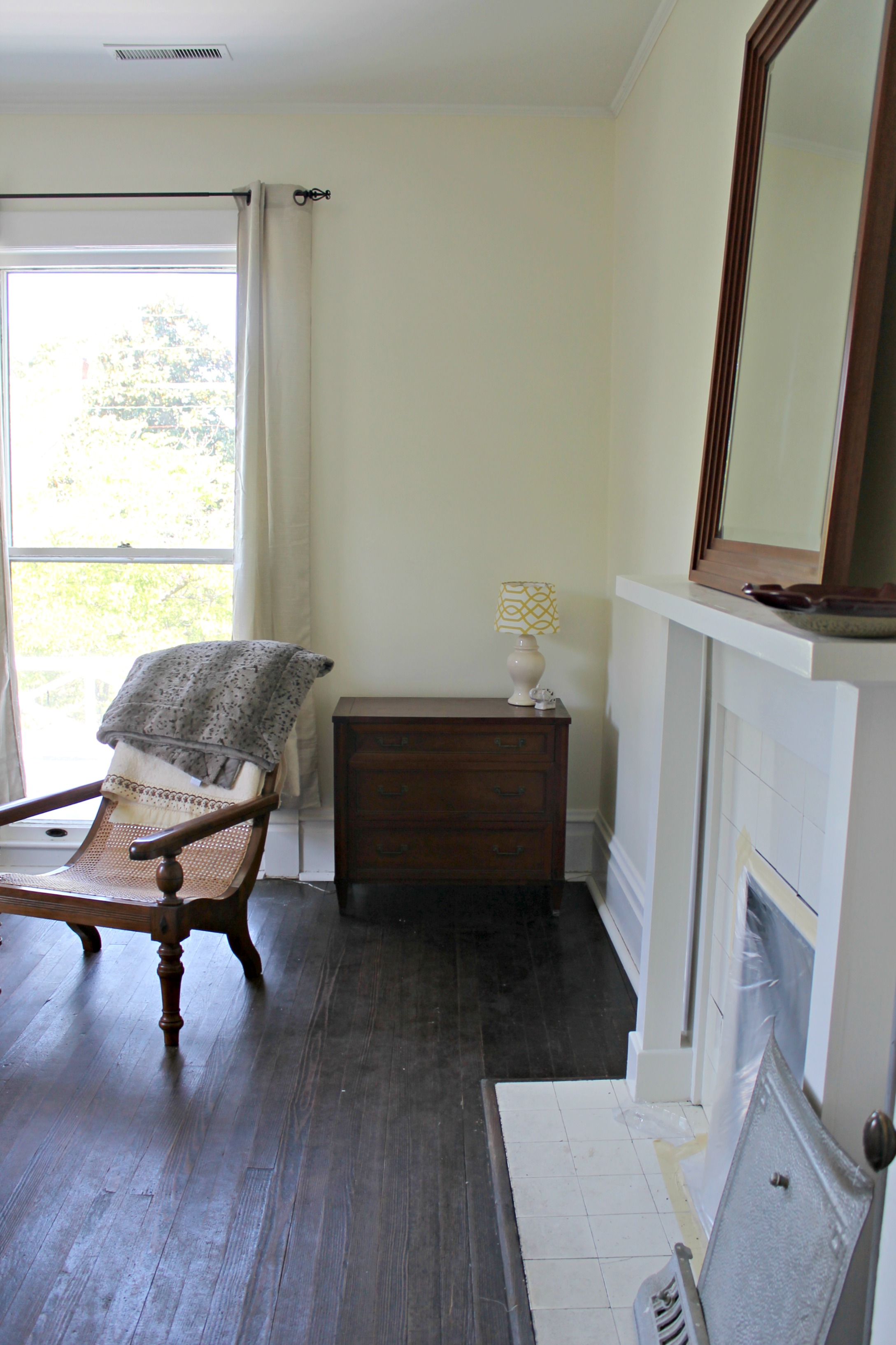This room looks a thousand times better now! I love those dark wood floors. All your hard work is definitely paying off!