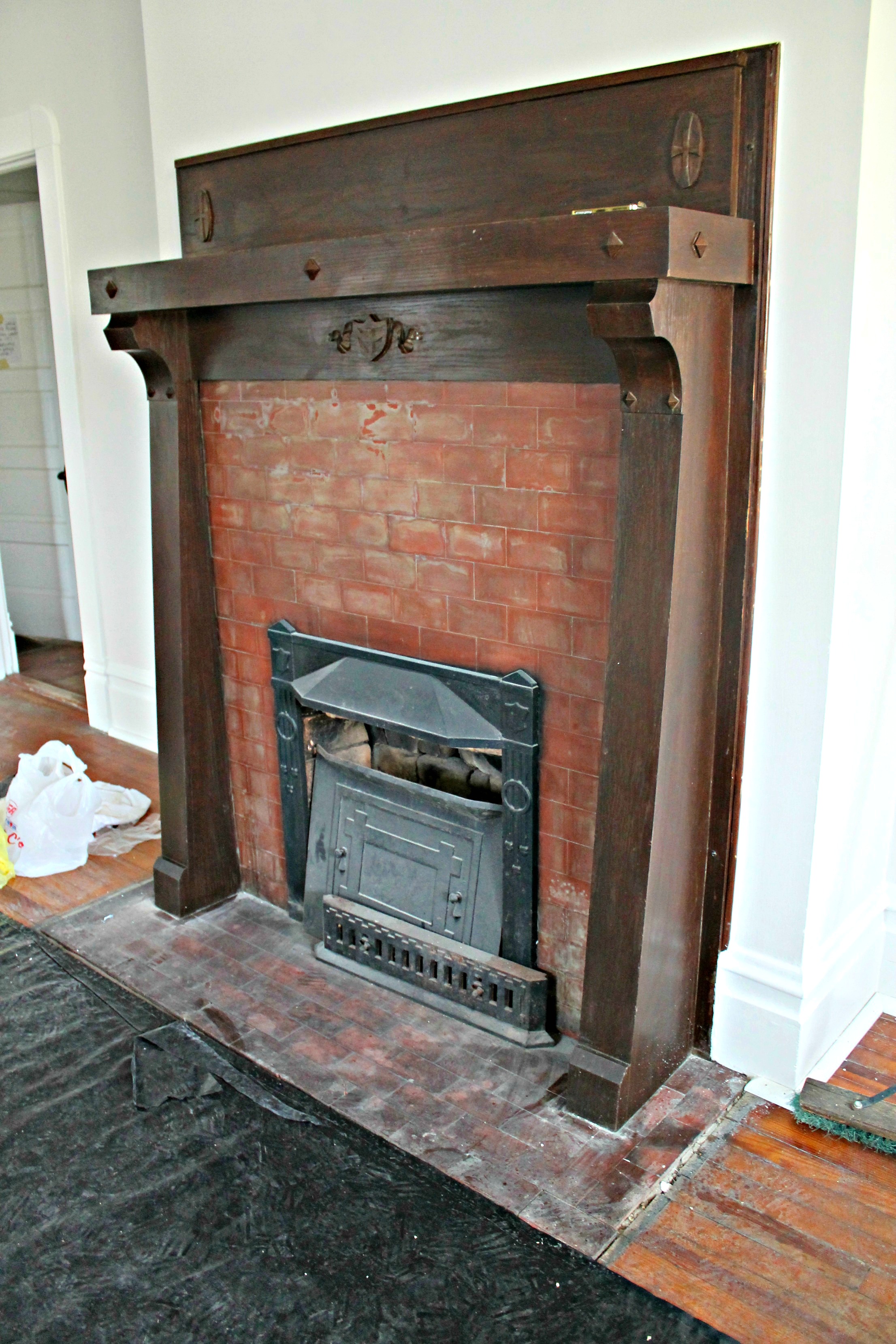 I’ve learned from this project of ours that sometimes the little things make the biggest difference. A few weeks ago we did some minor work to our downstairs fireplaces, and I’m very happy with the results! A touch of varnish and a bit of paint goes a long way!