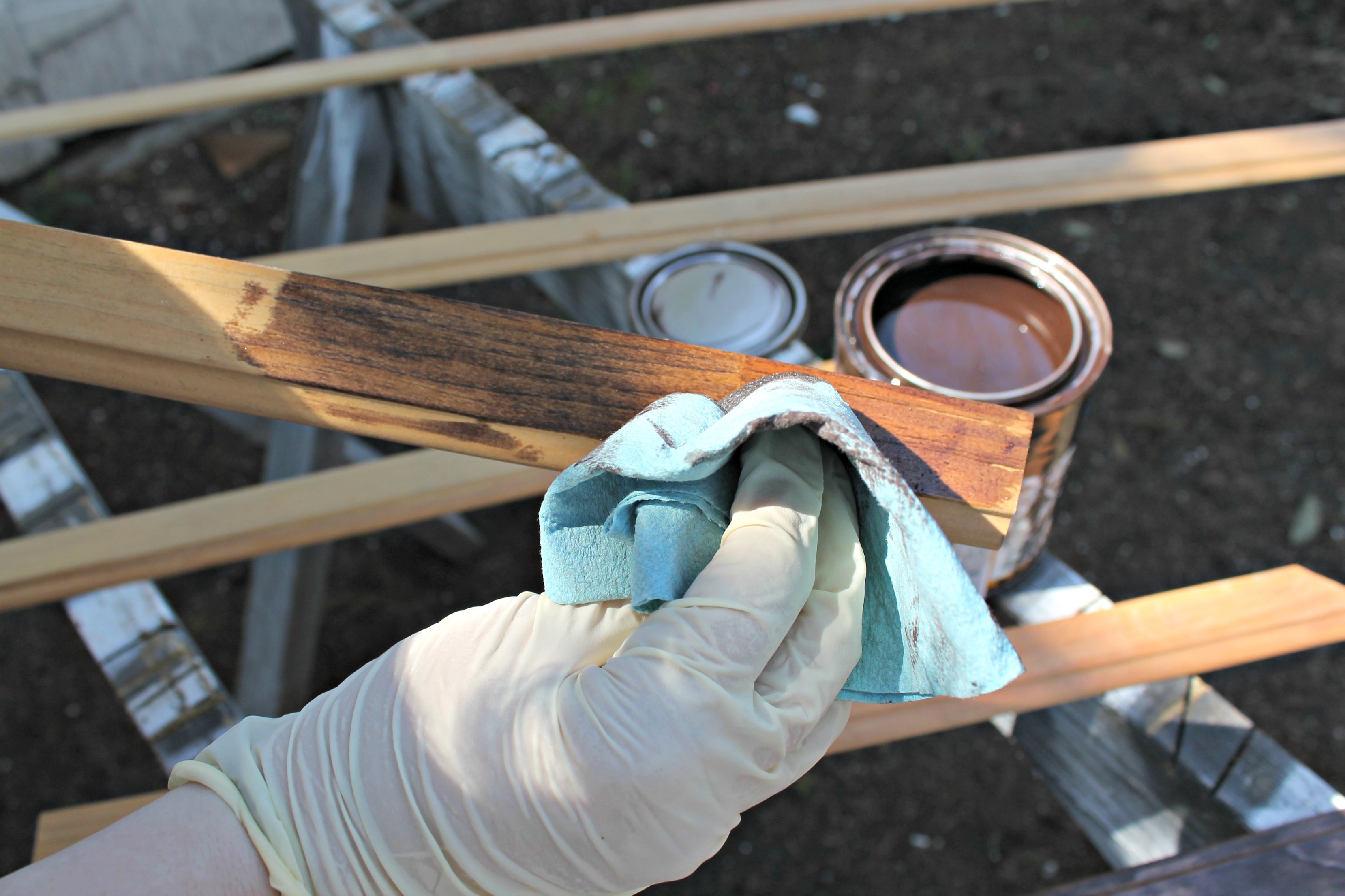 I thought about giving you a full tutorial post on applying varnish, but that would just be silly. It’s so so simple. For the new trim pieces that weren’t nailed down yet (in the dining room and foyer), I just set them up outside and rubbed them down with a paper towel with several coats of wood varnish. They dry so quickly that I was able to start the next coat as soon as I got finished with the one before.