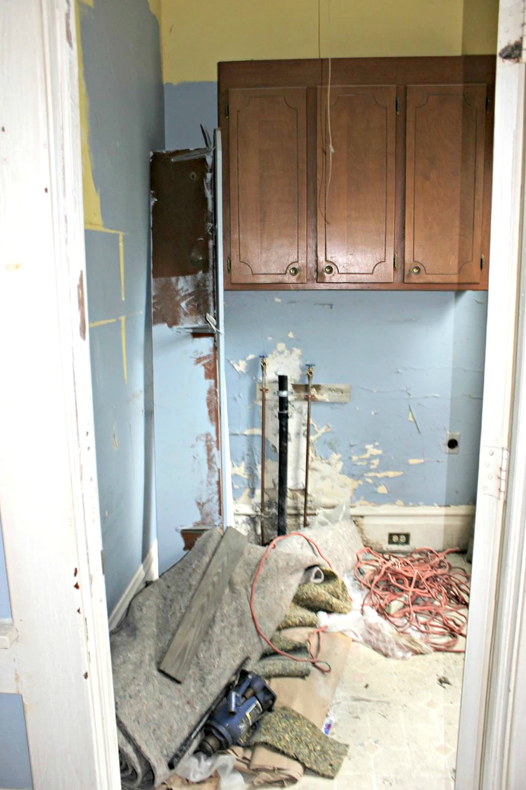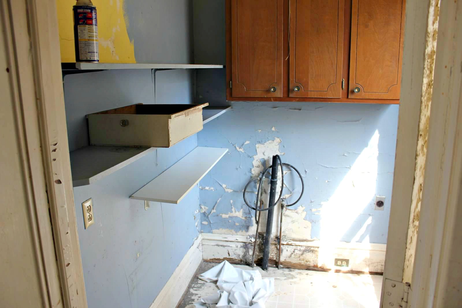 We installed our new washer and dryer, and the room has pretty much been sitting like this for the past few months.