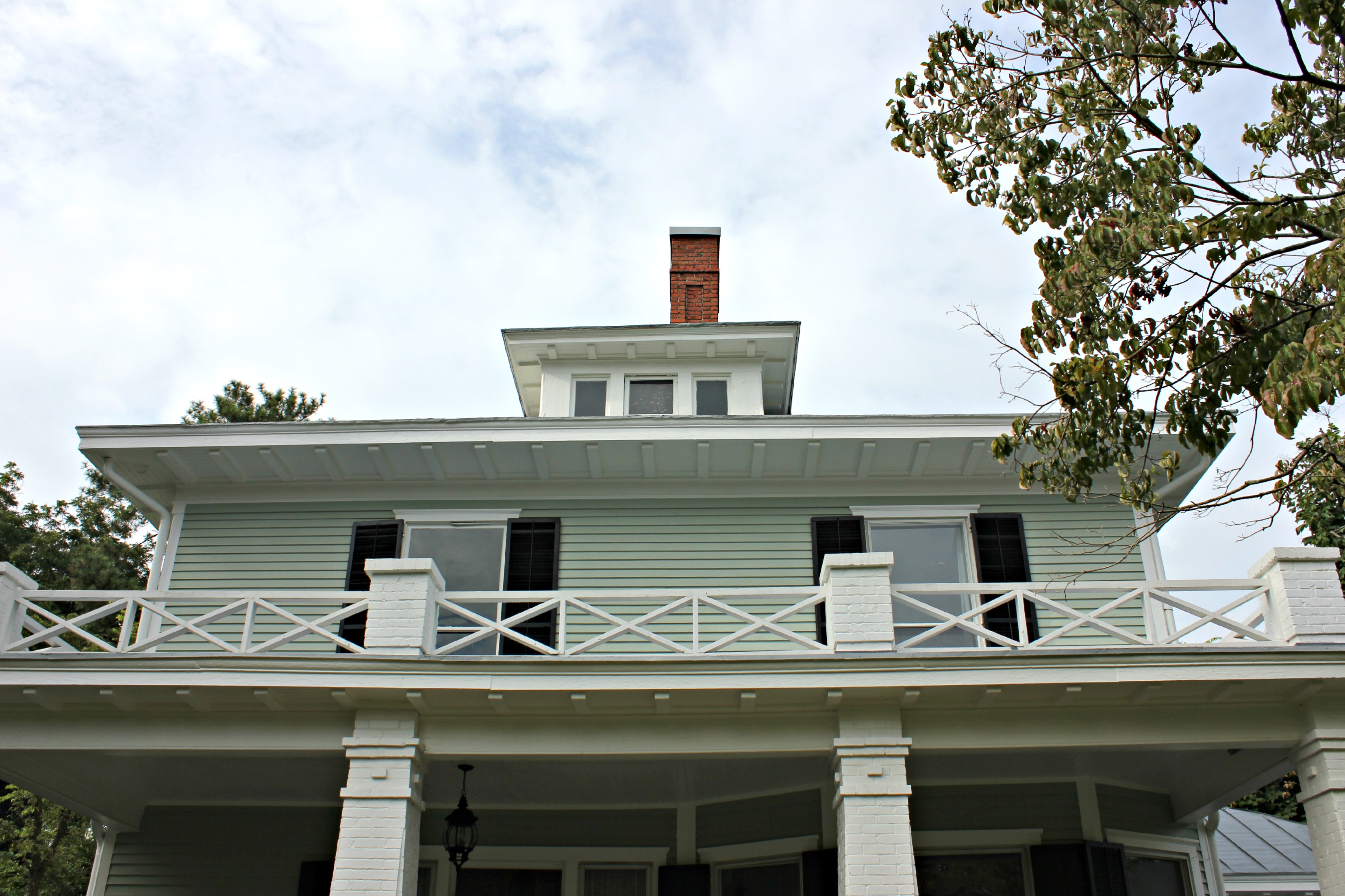 We are still in the process of getting all of our shutters reconstructed (there are 2 for every window on the house), and that could take quite a while because they are so expensive.  So we decided to just put them up on the front, and it made a world of difference!! The house just looks so much more complete from the street now.