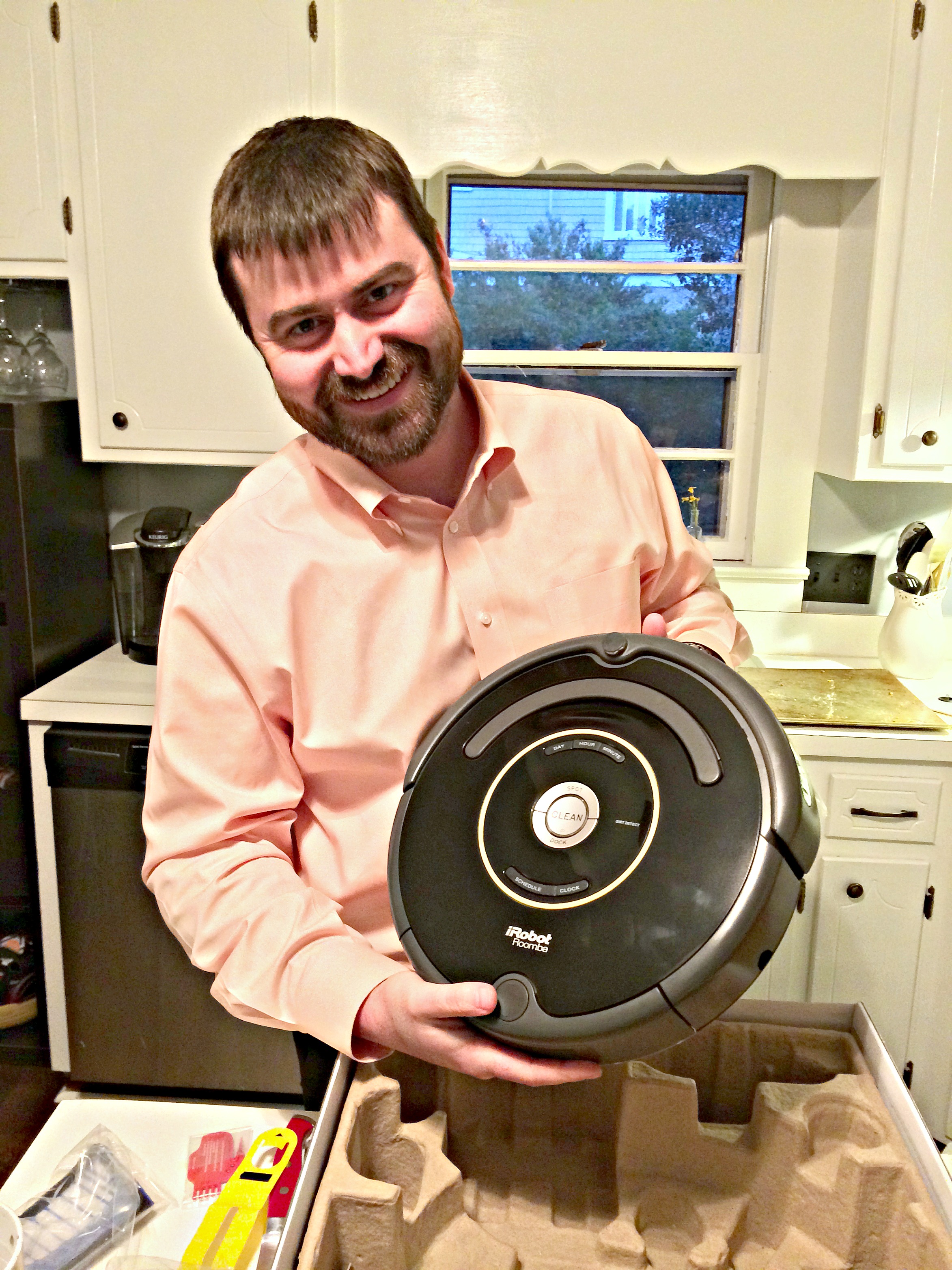 For Charles’ 30th birthday in May, he wanted the most romantic gift from his loving wife: a Roomba! So it came early and he is completely in love. I often catch him just standing in the corner watching it work. He’s even named it (Rowdy the Roomba) and calls himself a “Roomba parent.” It’s pretty sweet. And I have to admit…that thing is freaking awesome! I would totally recommend it!!