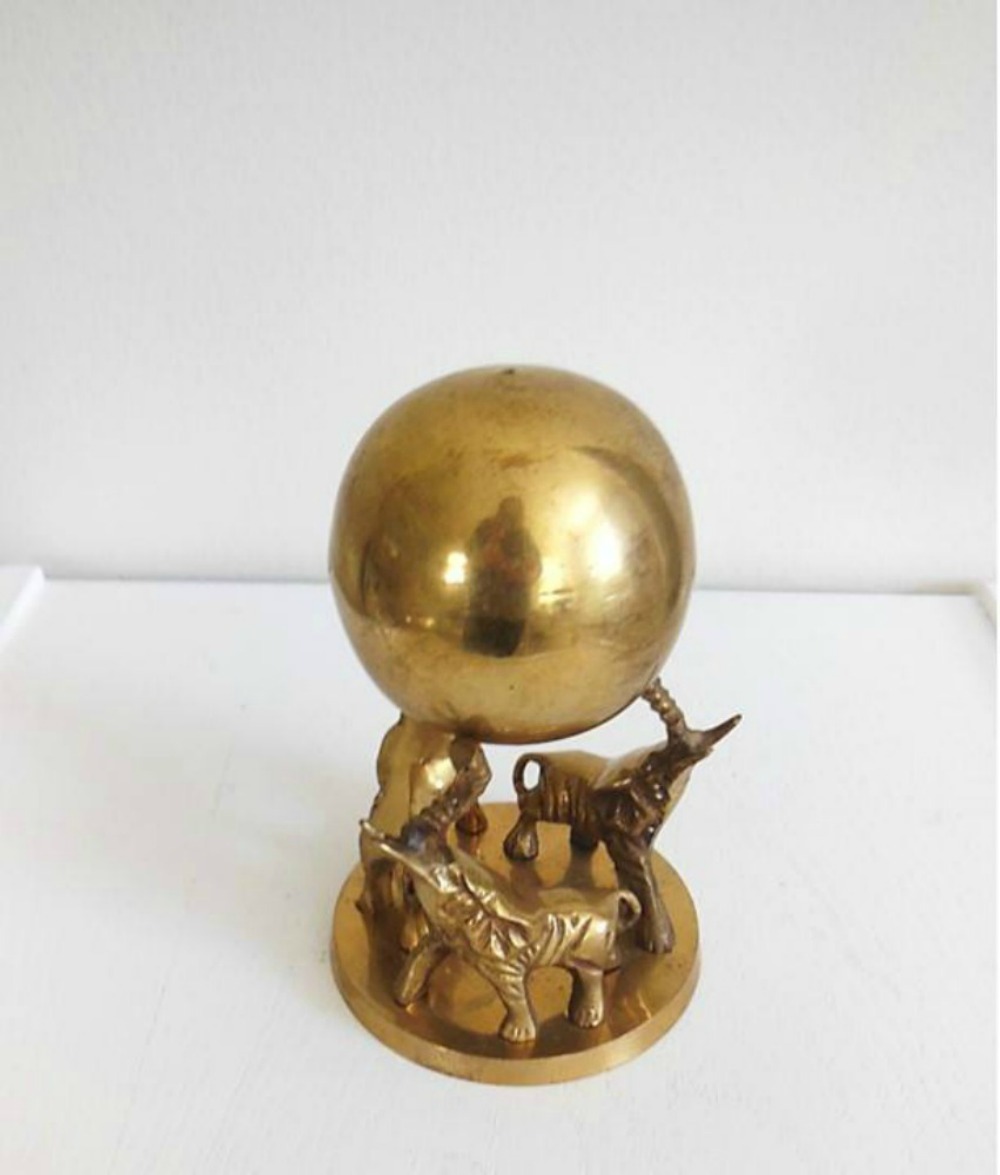 I took a quick 30-minute trip to the antique mall in my hometown last Thursday, and was pleasantly surprised. It made me wish I had longer to spend in there…but it’s probably good I didn’t! I fell in love with this large brass table, but decided to pass. (Ignore the chair sitting on top.)