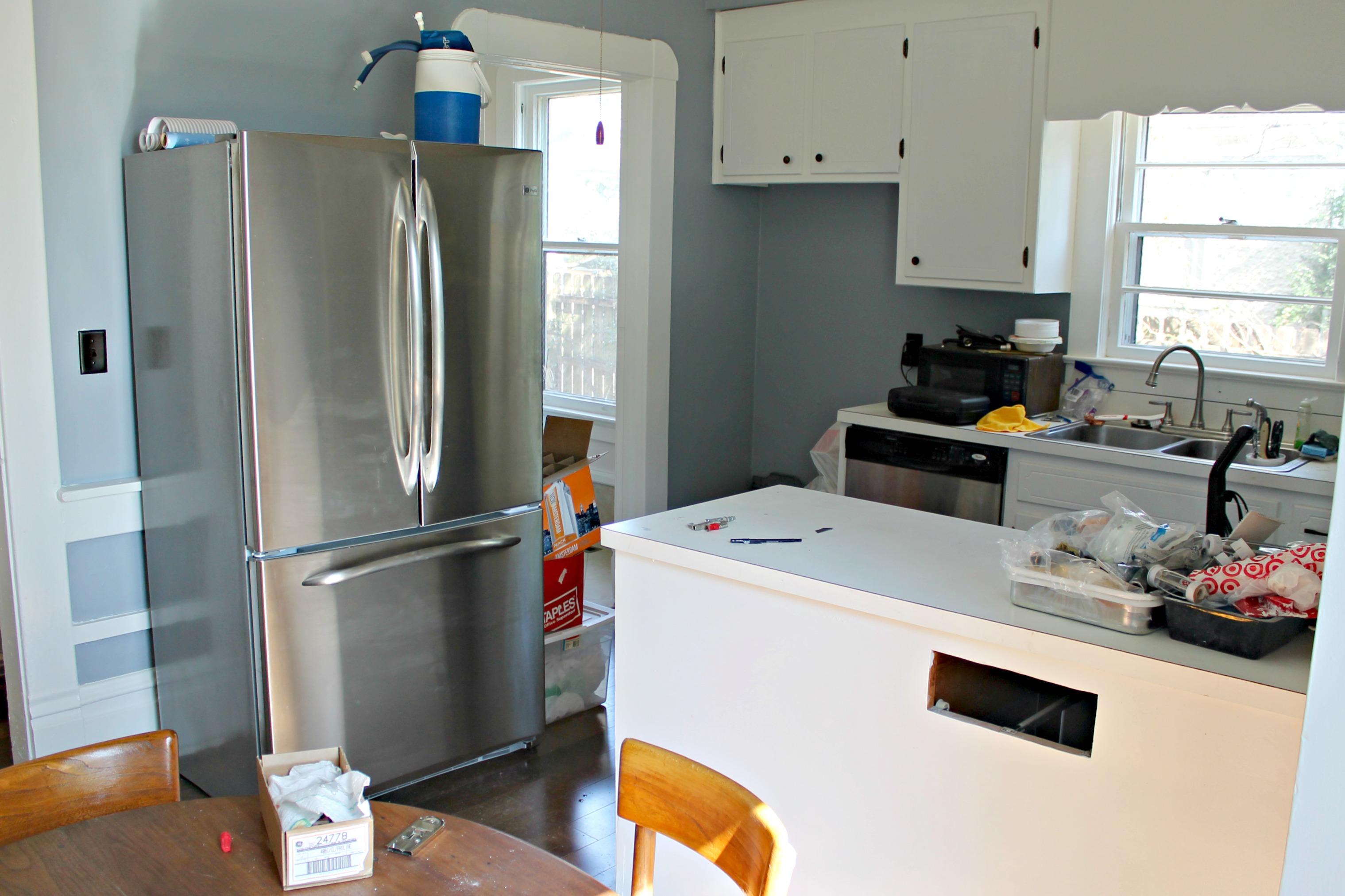 Compared to the rest of our house, the kitchen renovation was a breeze. We knew that we wouldn’t have enough in the budget to fully remodel the way that we wanted, so we decided to spend as little as possible in the kitchen and plan for a huge overhaul a few years down the road.