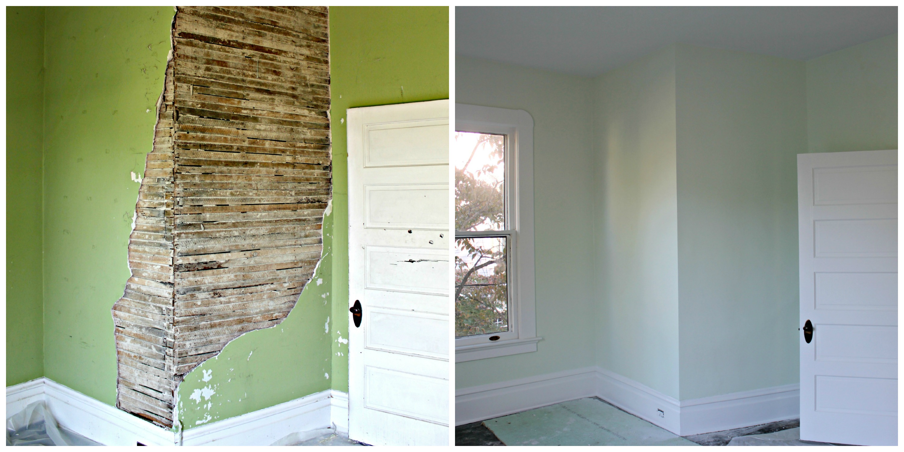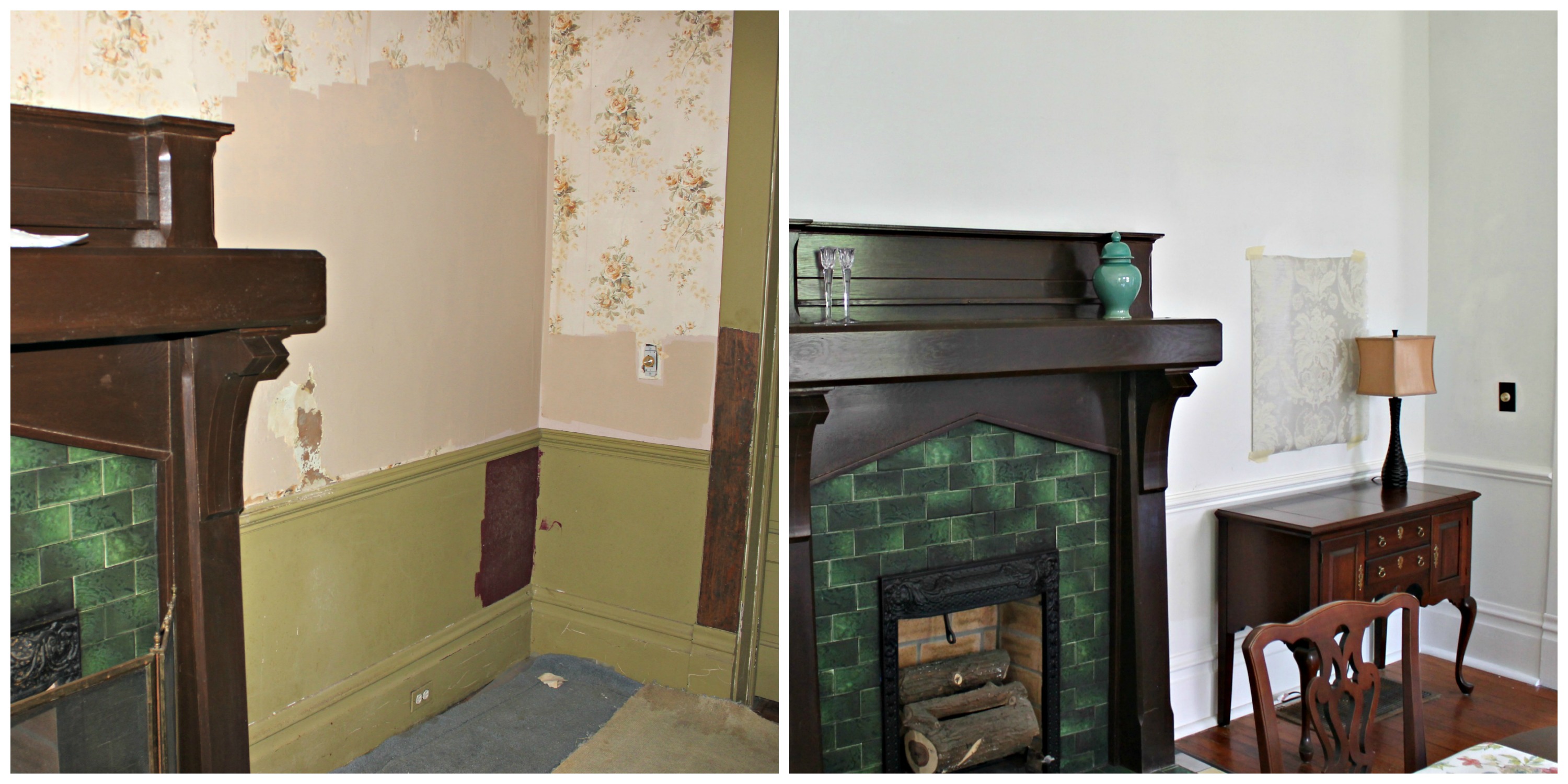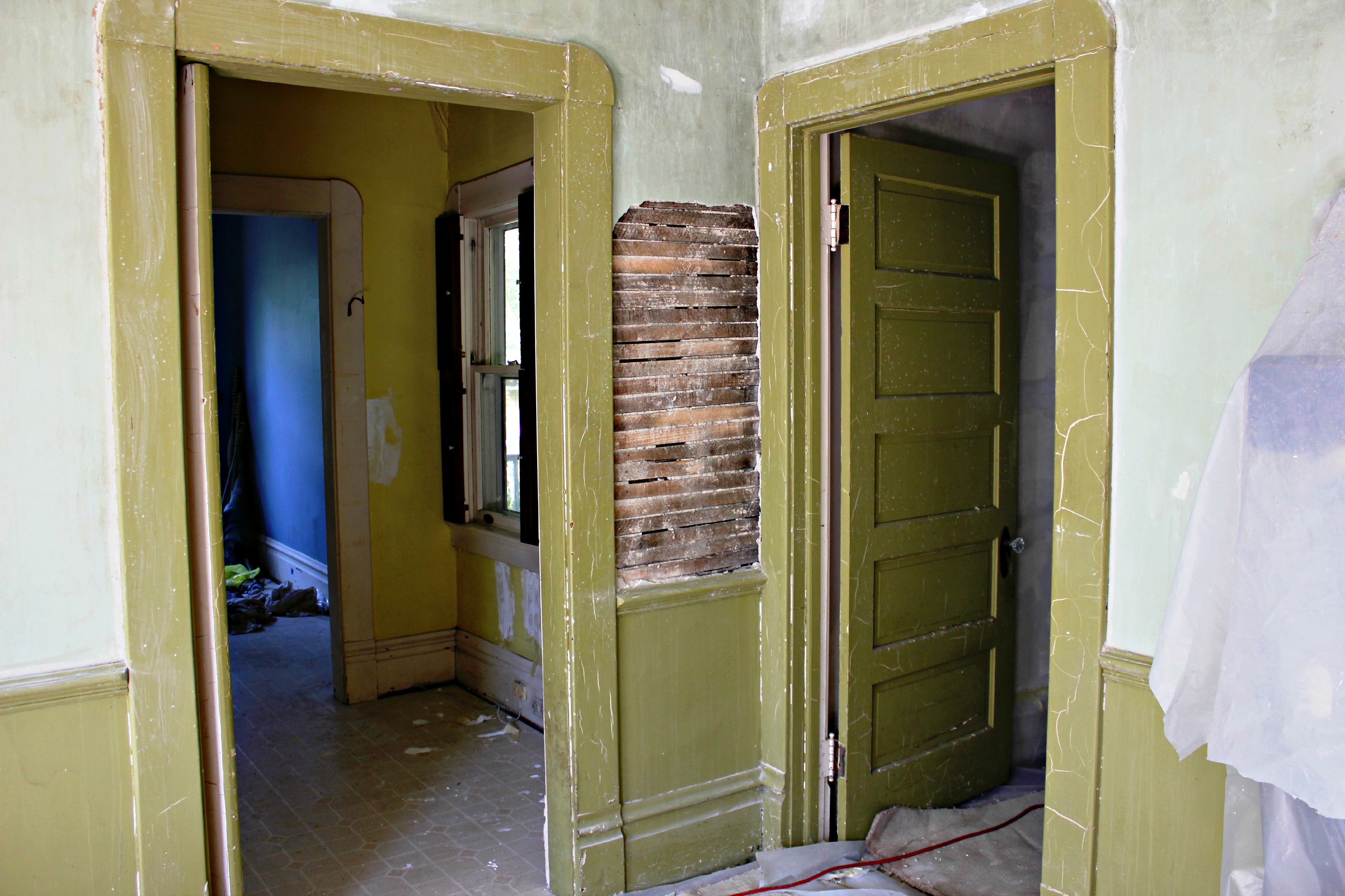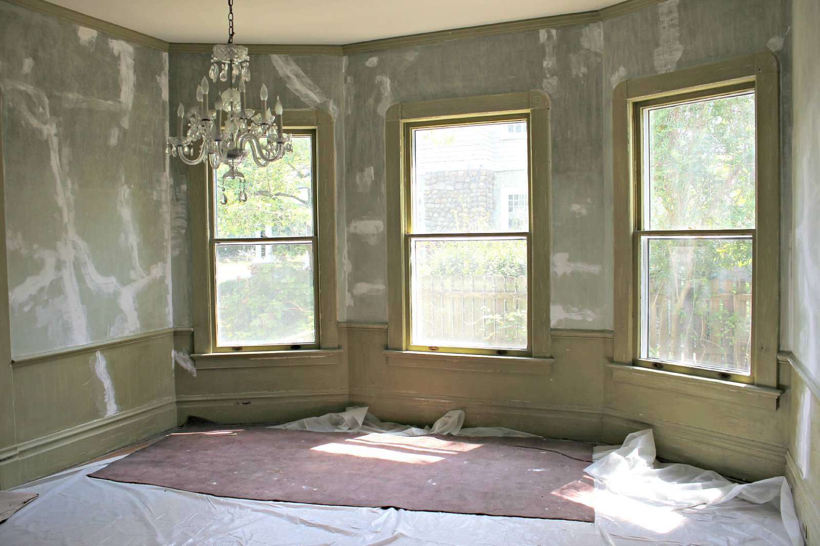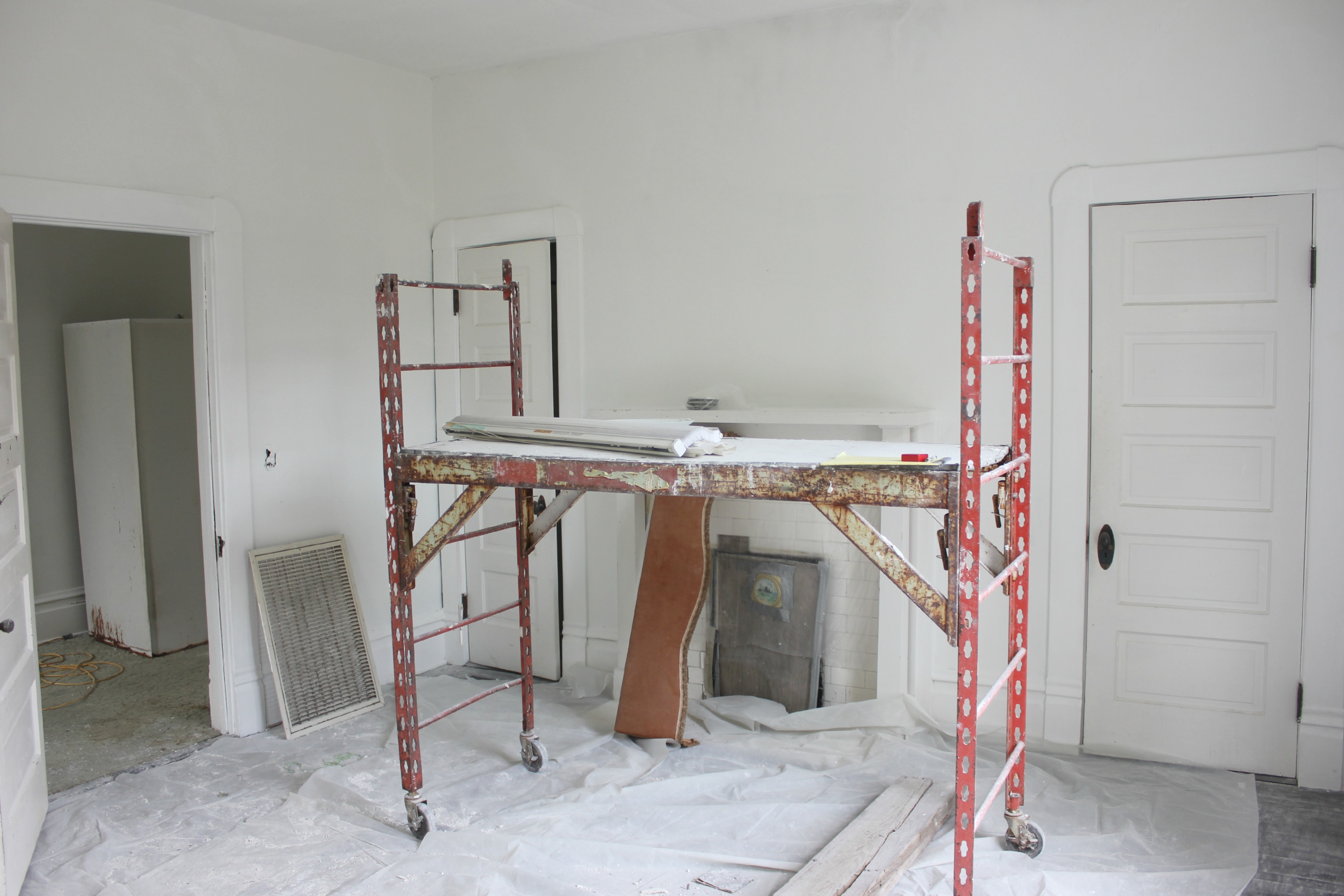 We painted the walls in Kitten White and the trim in a high gloss white. We had minor termite damage (no active termites – yay!!) in the floor, so we went ahead and filled that in to prevent further cracking. We will eventually get around to oiling and refinishing the floors.