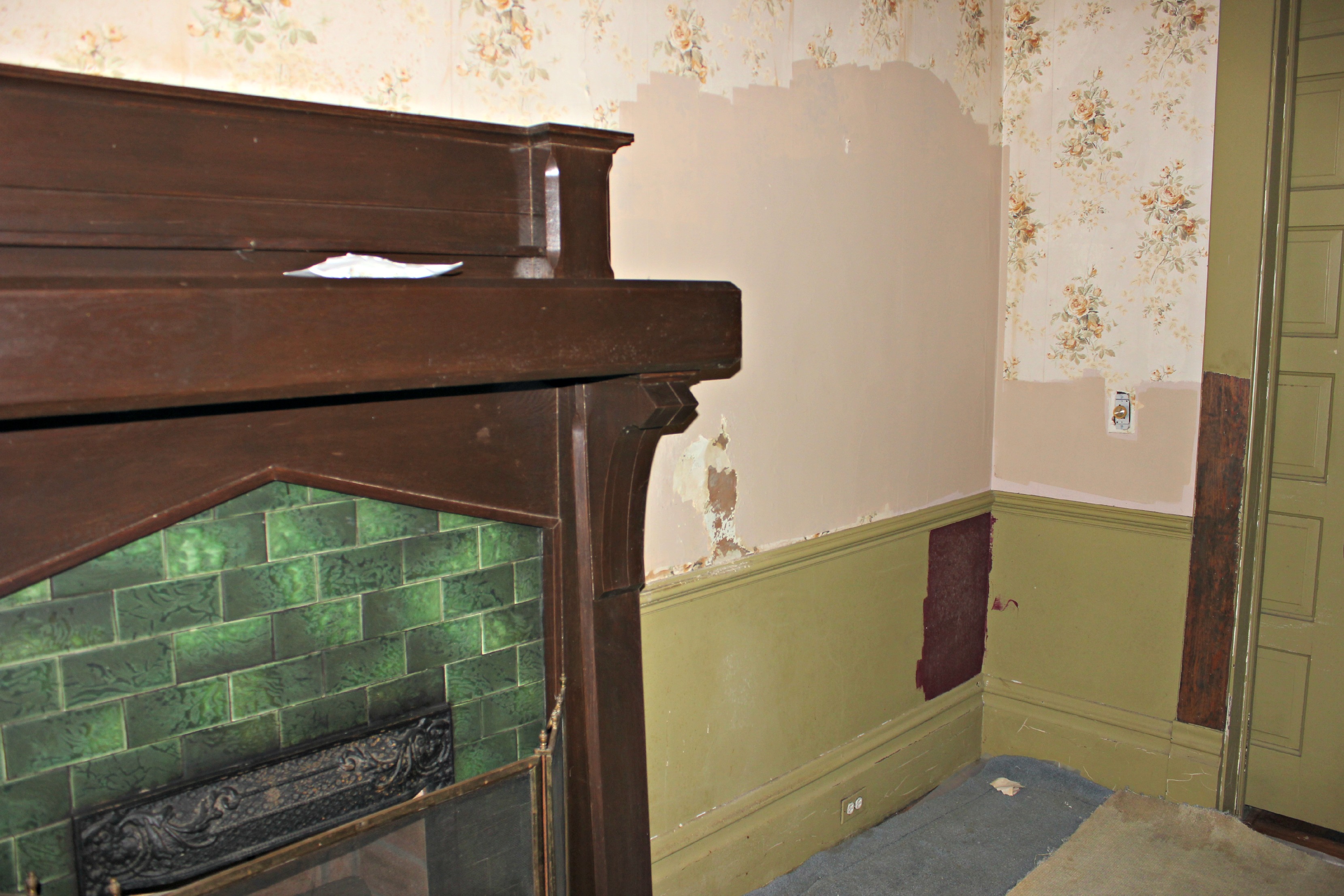 The figures…this room is 13′ x 21′ 6″ with 11′ ceilings. There are 4 windows, 1 fireplace, 1 exterior door, 5 interior doors, and 1 closet.